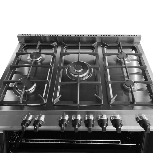 Daewoo Gas Cooker with Gas Oven 90cm, cast iron, Convection fan, Double ring burner, Self-cleaning, Sabaf burners, 90 Litre Capacity, Stainless steel, DGC-S965HF