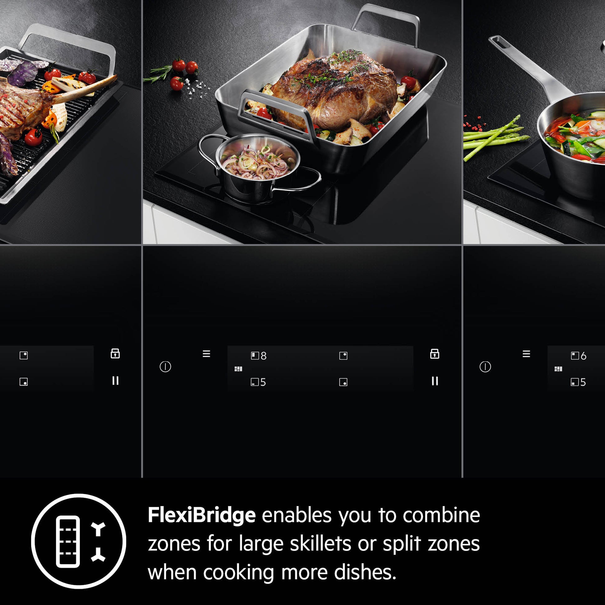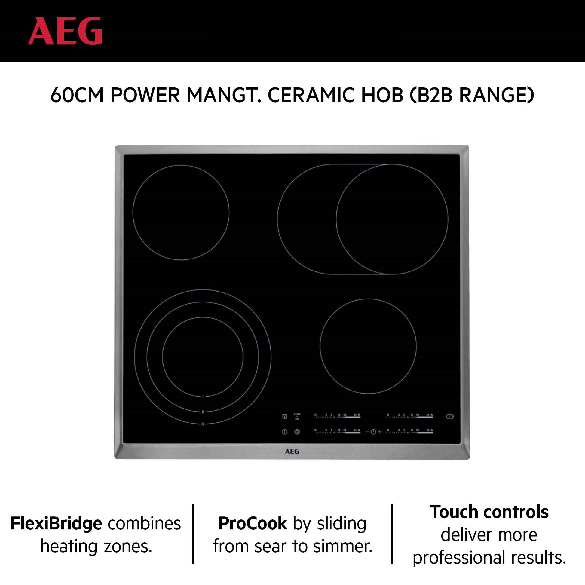 AEG Built-in Electric Ceramic Hobs 60cm, Flexibridge, Procook, Touch controls, Black, HK654071XB