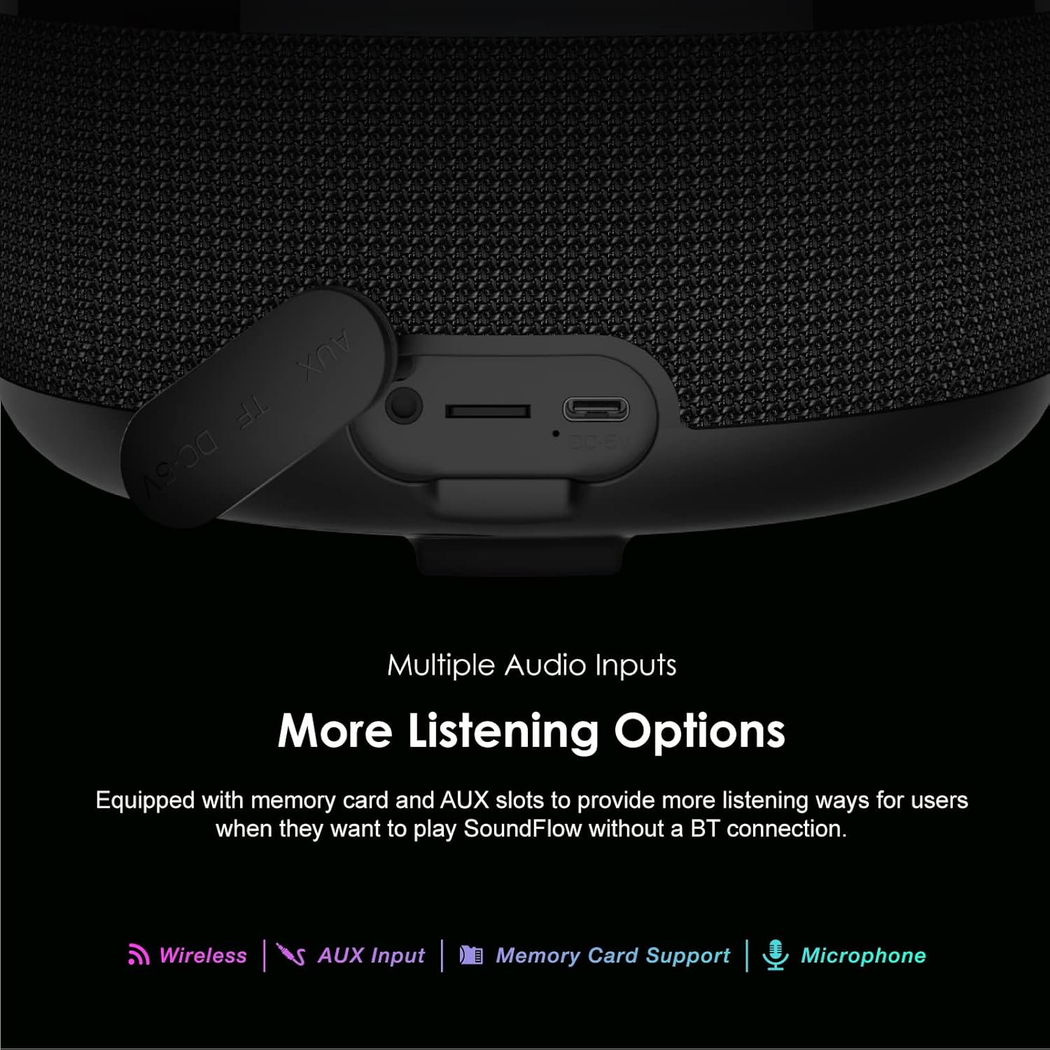 Oraimo SoundFlow BT V5.1 Bluetooth Speaker, 50Hz-20KHz, 50W, 6,000mAh, Black, OBS-72DBLK