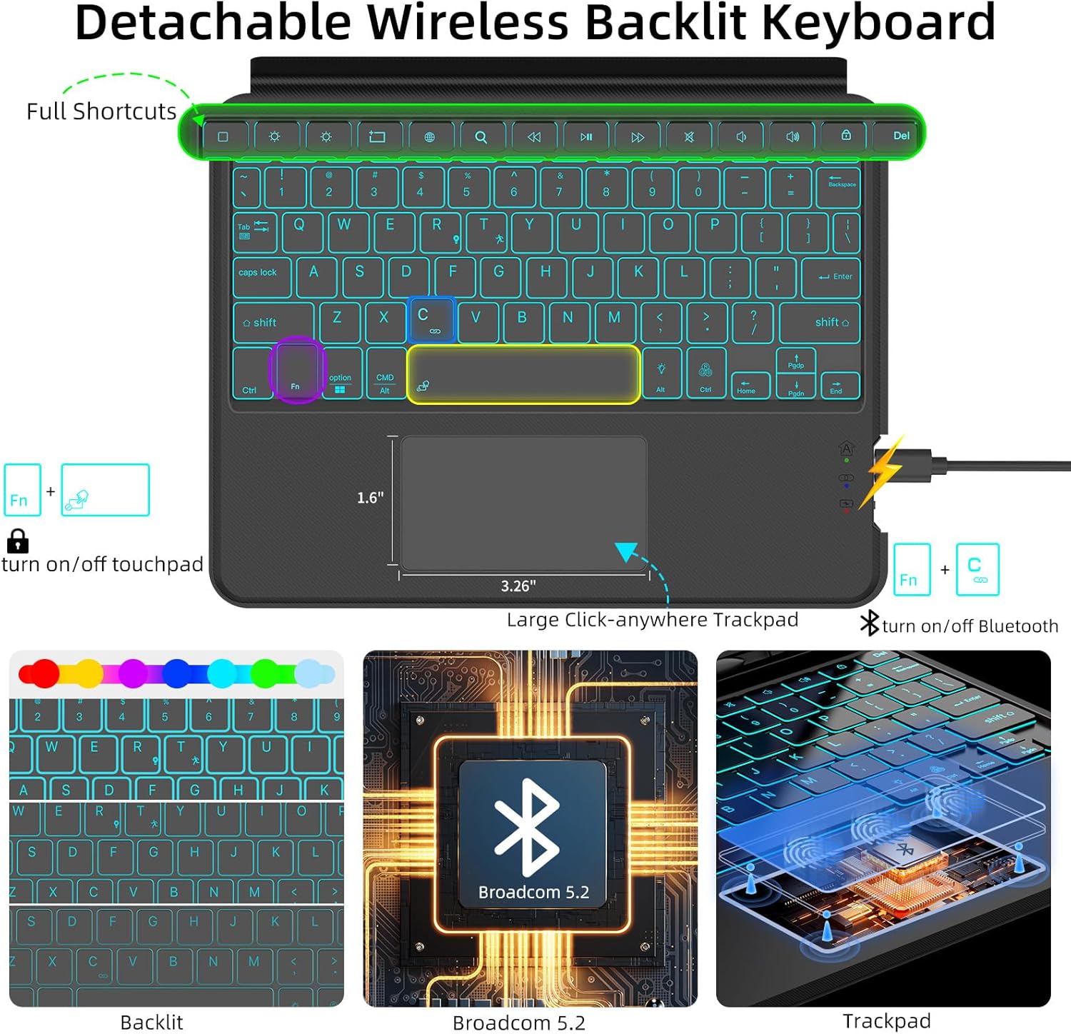 PROTECT SAMSUNG TAB S9 Protective Tablet Keyboard, Bluetooth, With Trackpad, Backlit, Grey, HL118B