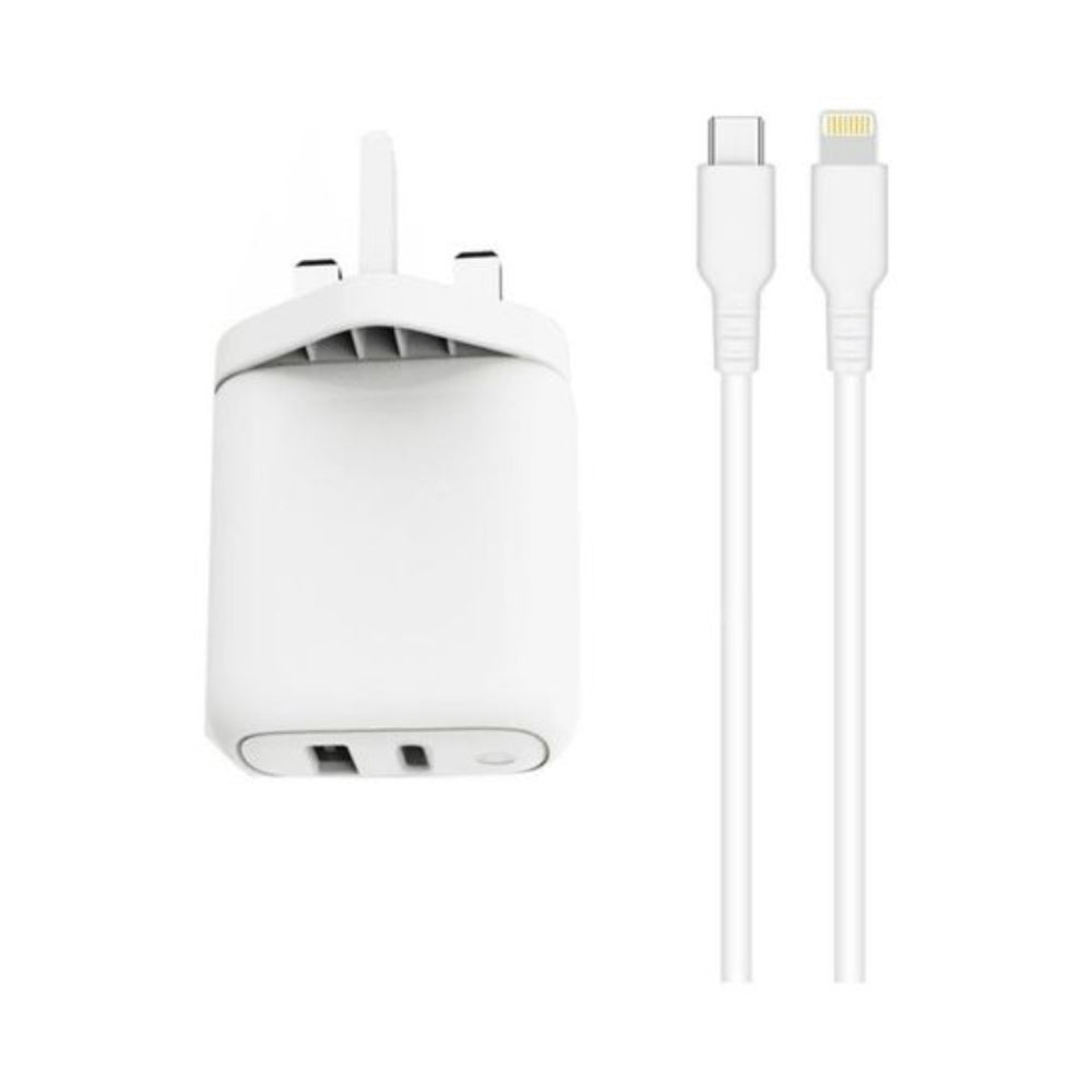 Trands Qualcomm Quick Charge 3.0 Charger With Type-C To Lightning Cable White